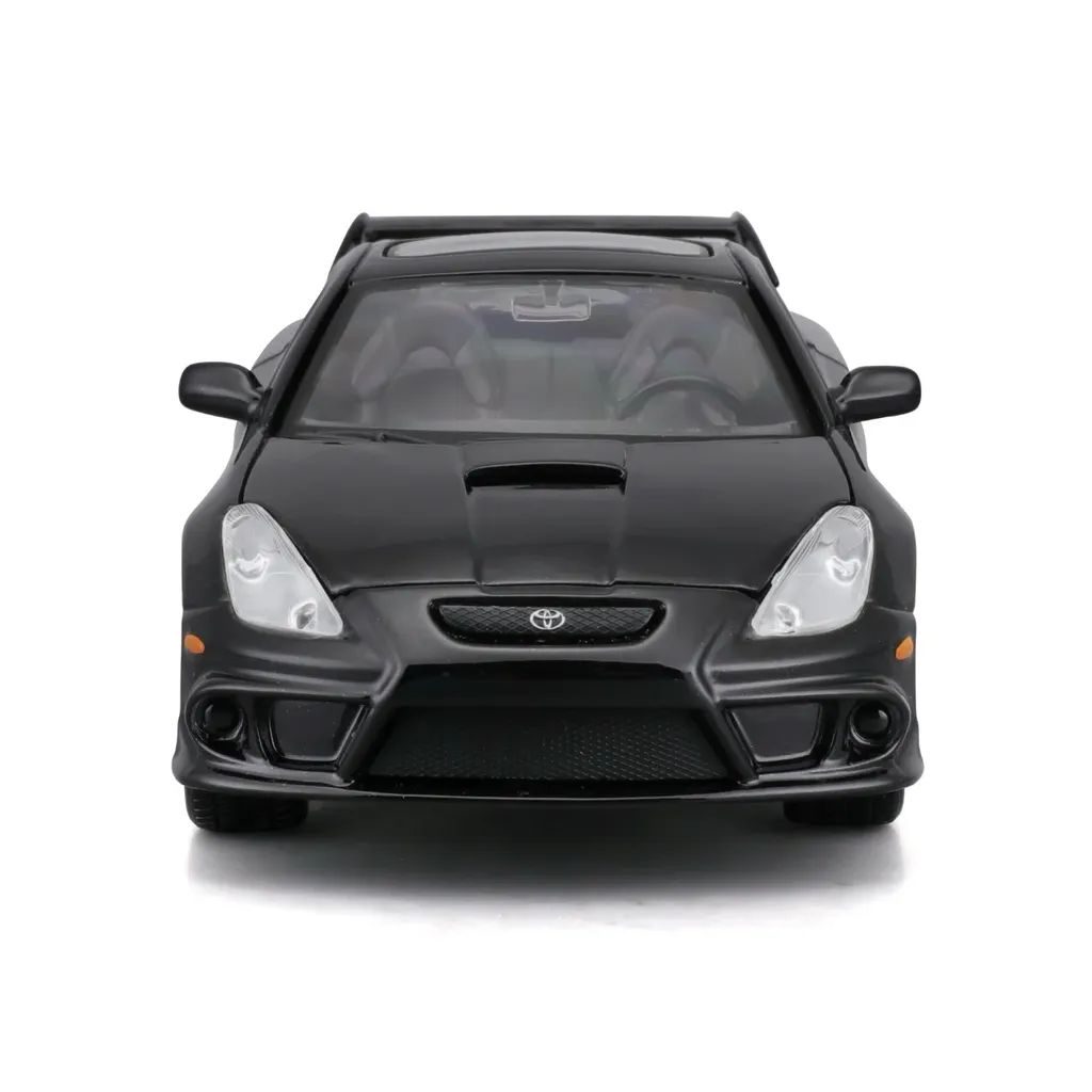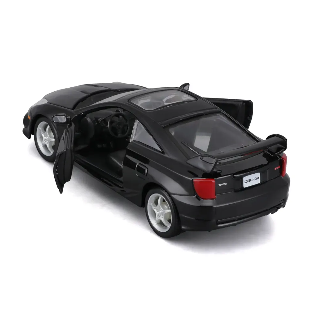 Svart Toyota Celica GT-S som leksaksmodell från Maisto. Bilen är i skala 1:24 (17 cm) och har öppningsbara dörrar och motorhuv.