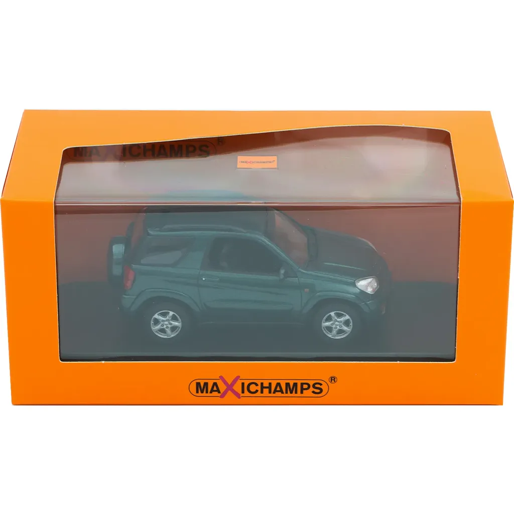 Grön Toyota RAV4, årsmodell 2000, som modellbil tillverkad av Maxichamps i skala 1:43 (8,7 cm).