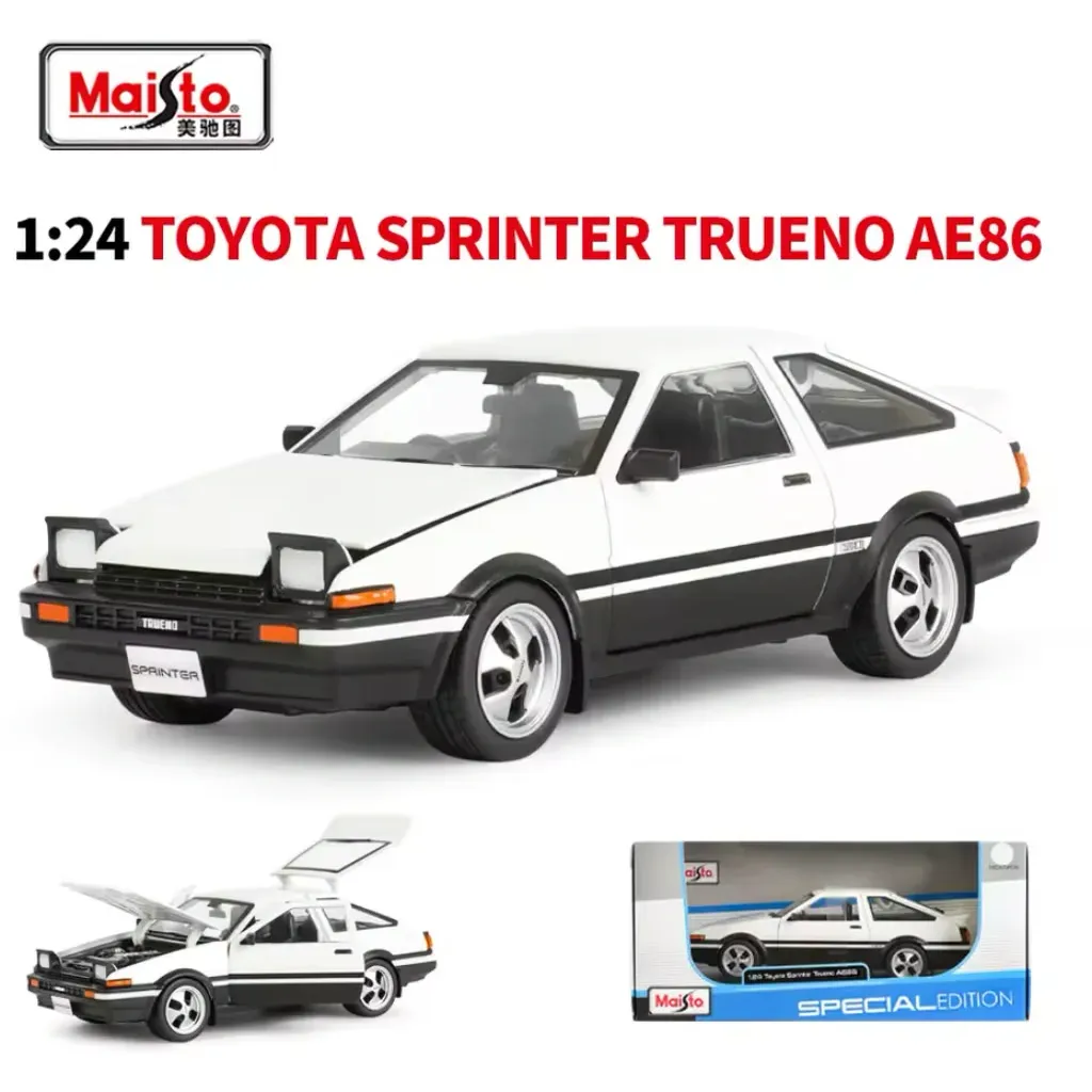 Toyota Sprinter Trueno AE86 i vitt och svart som leksaksmodell från Maisto i skala 1:24 (17,5 cm).