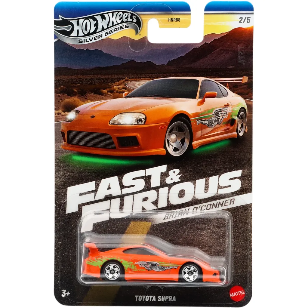 Orange Toyota Supra känd från Fast & Furious som leksaksbil från Hot Wheels och serien Silver Series / Brian O'Conner där denna bil är nummer 2 av 5.