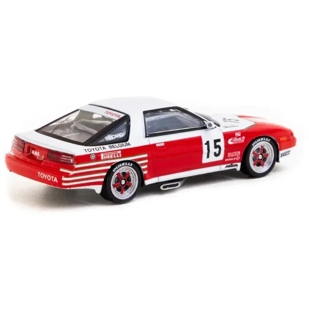 Toyota Supra Turbo (MA70) som körde ETCC 1987 från modellbilstillverkaren Tarmac Works och serien HOBBY64 i skala 1:64 (7 cm).