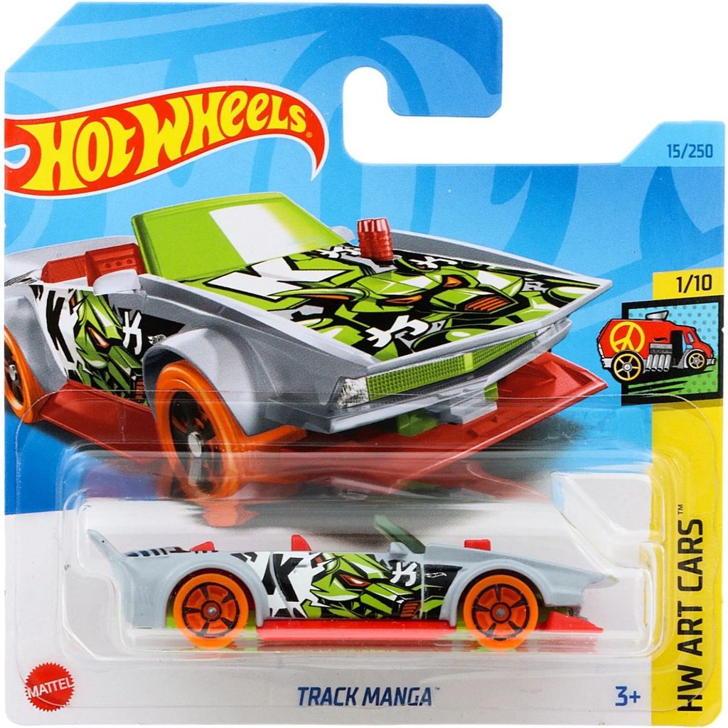 Track Manga från Hot Wheels och serien HW Art Cars där denna leksaksbil är bil nummer 1/10. Bilen är nummer 15/250 från 2023 och har ett short card (5785).