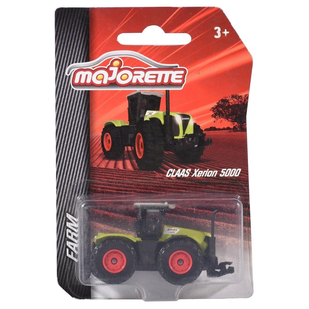 Liten grön leksakstraktor från Majorettes serie Farm. Traktorn är en CLAAS Xerion 5000 och tillverkas under licens av CLAAS Service and Parts GmbH som är en tysk tillverkare av traktorer, skördetröskor och andra typer av jordbruksmaskiner.