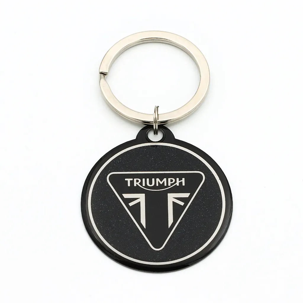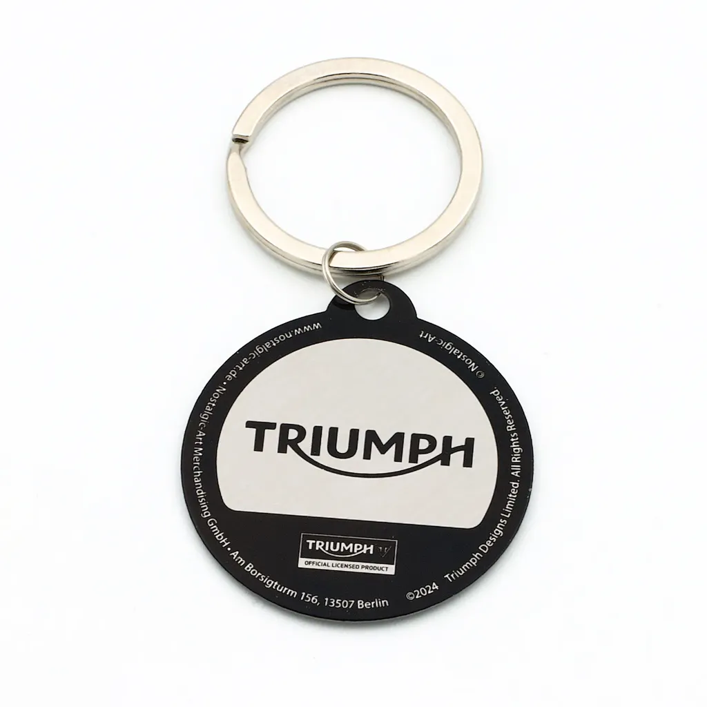 Nyckelring med Triumphs logotyp. Färgerna är svart, grå och silver.