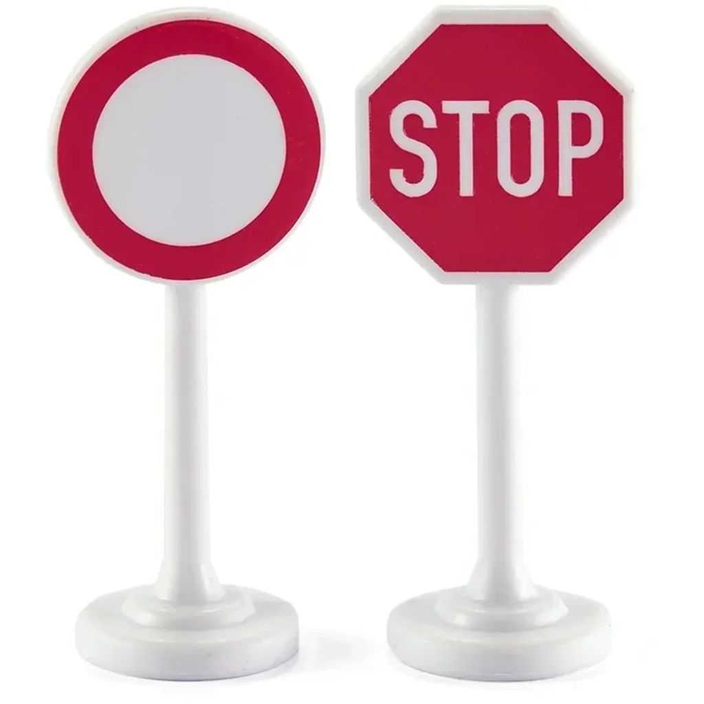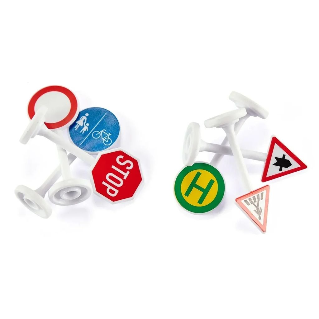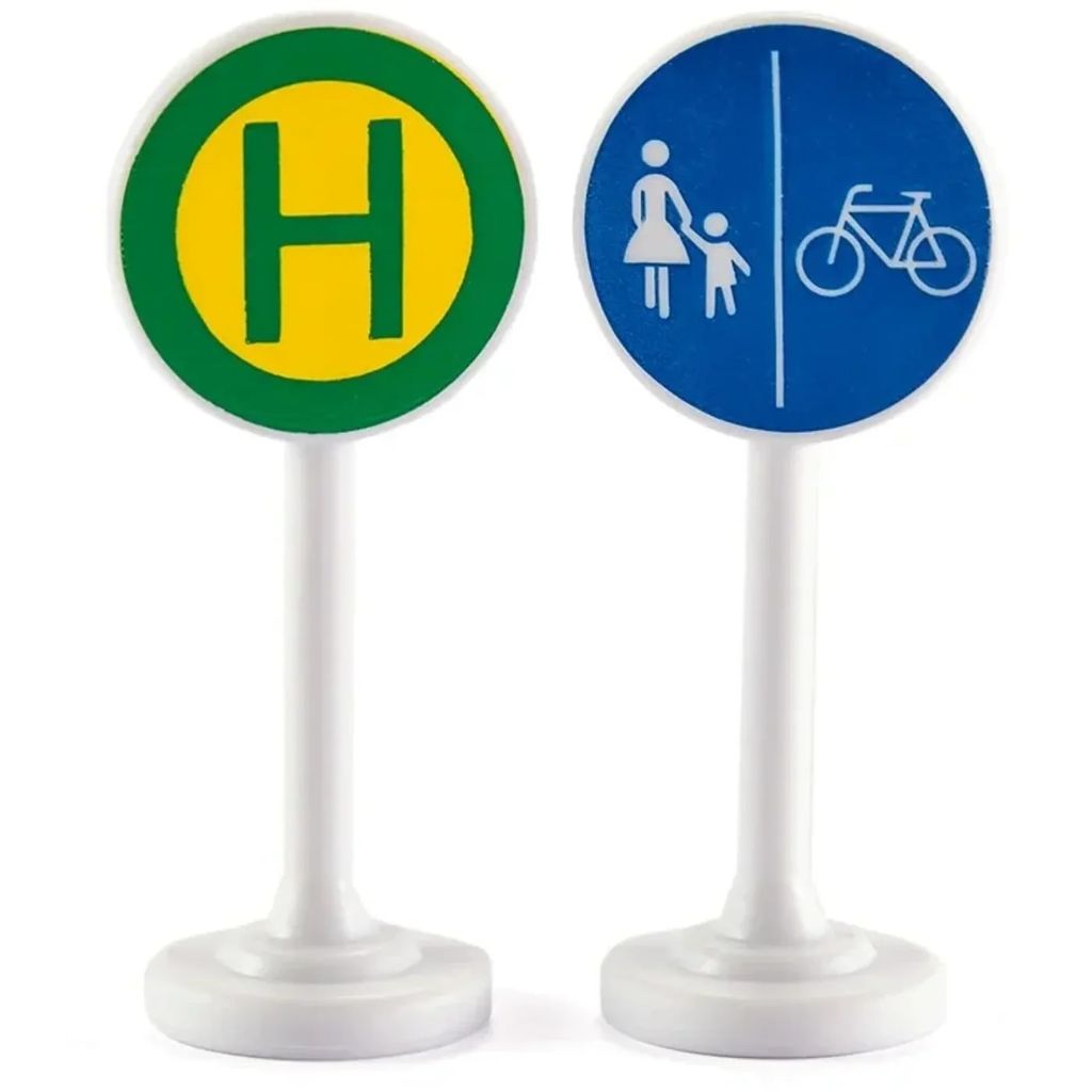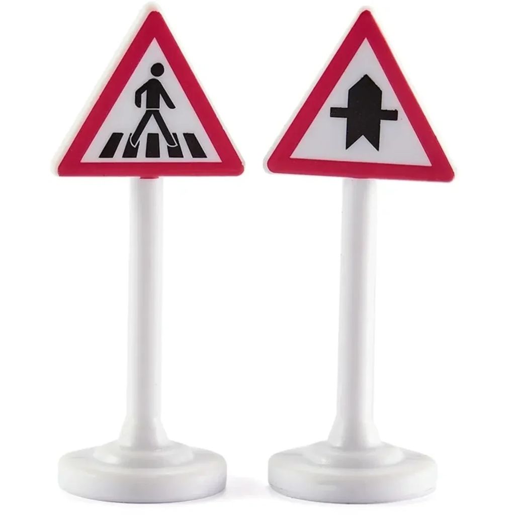 Sex vägskyltar från Siku. Skyltarna är 5 cm höga.