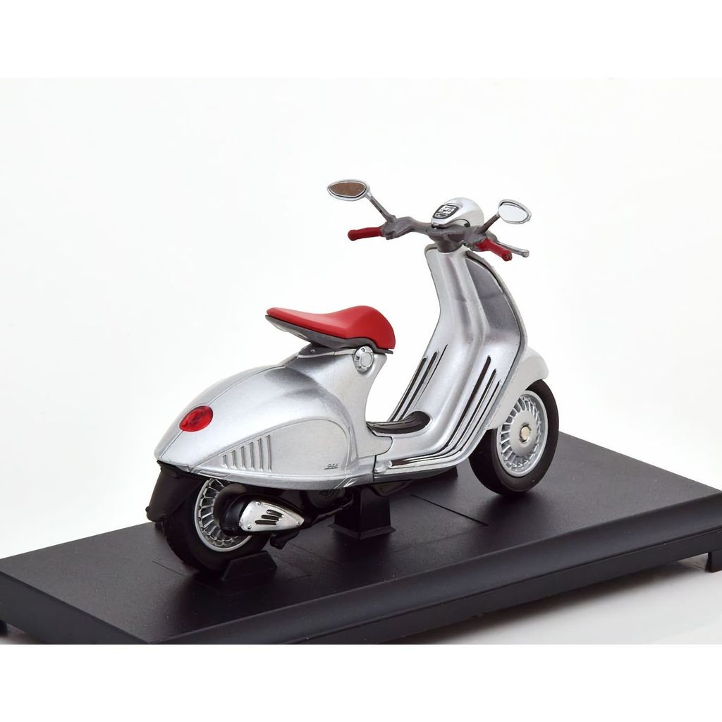 Silverfärgad Vespa 946, årsmodell 2014, från Welly i skala 1:18 (10,5 cm lång).