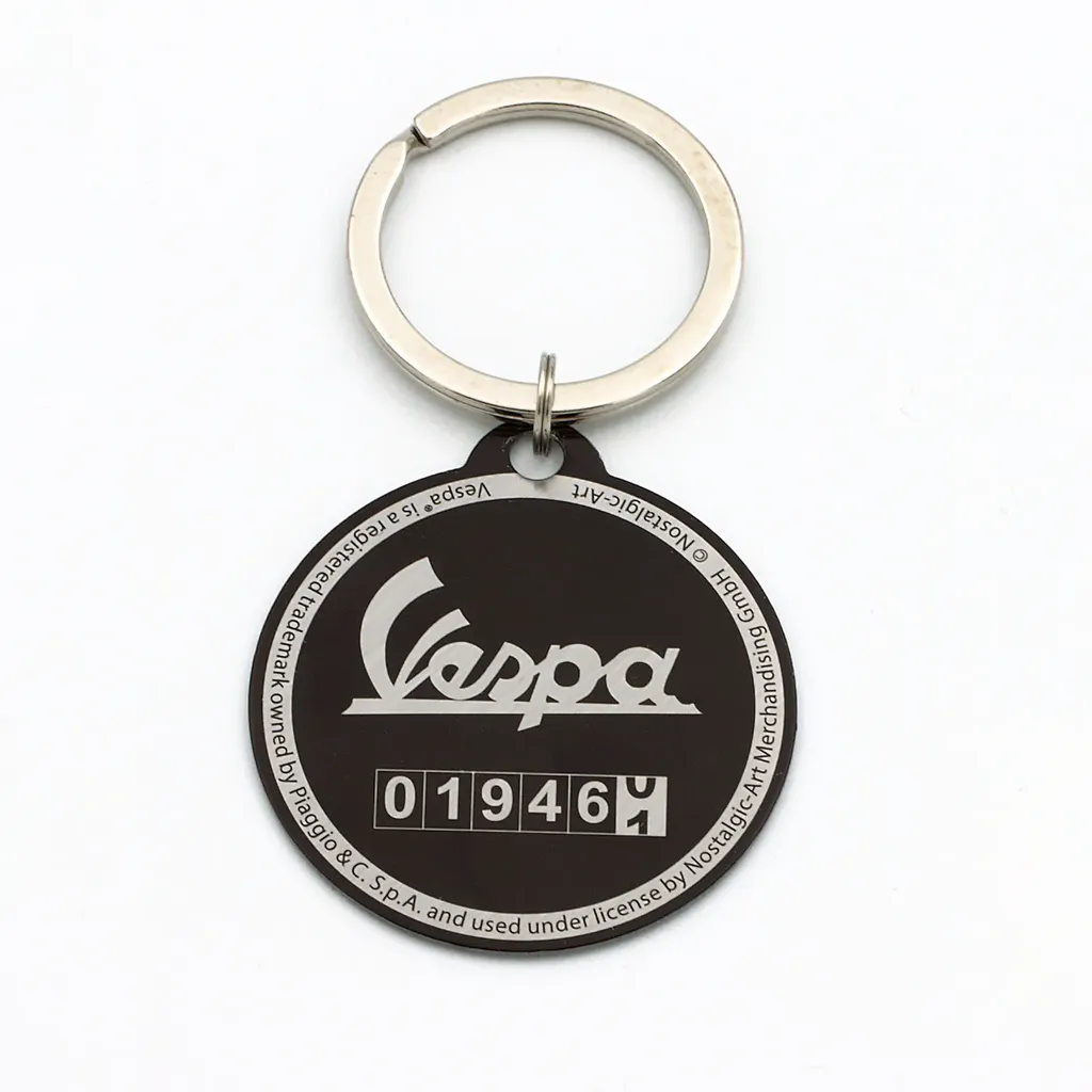 Nyckelring i metall med motiv av en instrumentpanel från en Vespa.