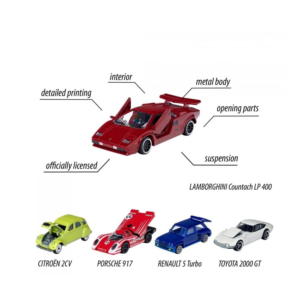 Leksaksbilarna är tillverkade under licens från respektive biltillverkare.
