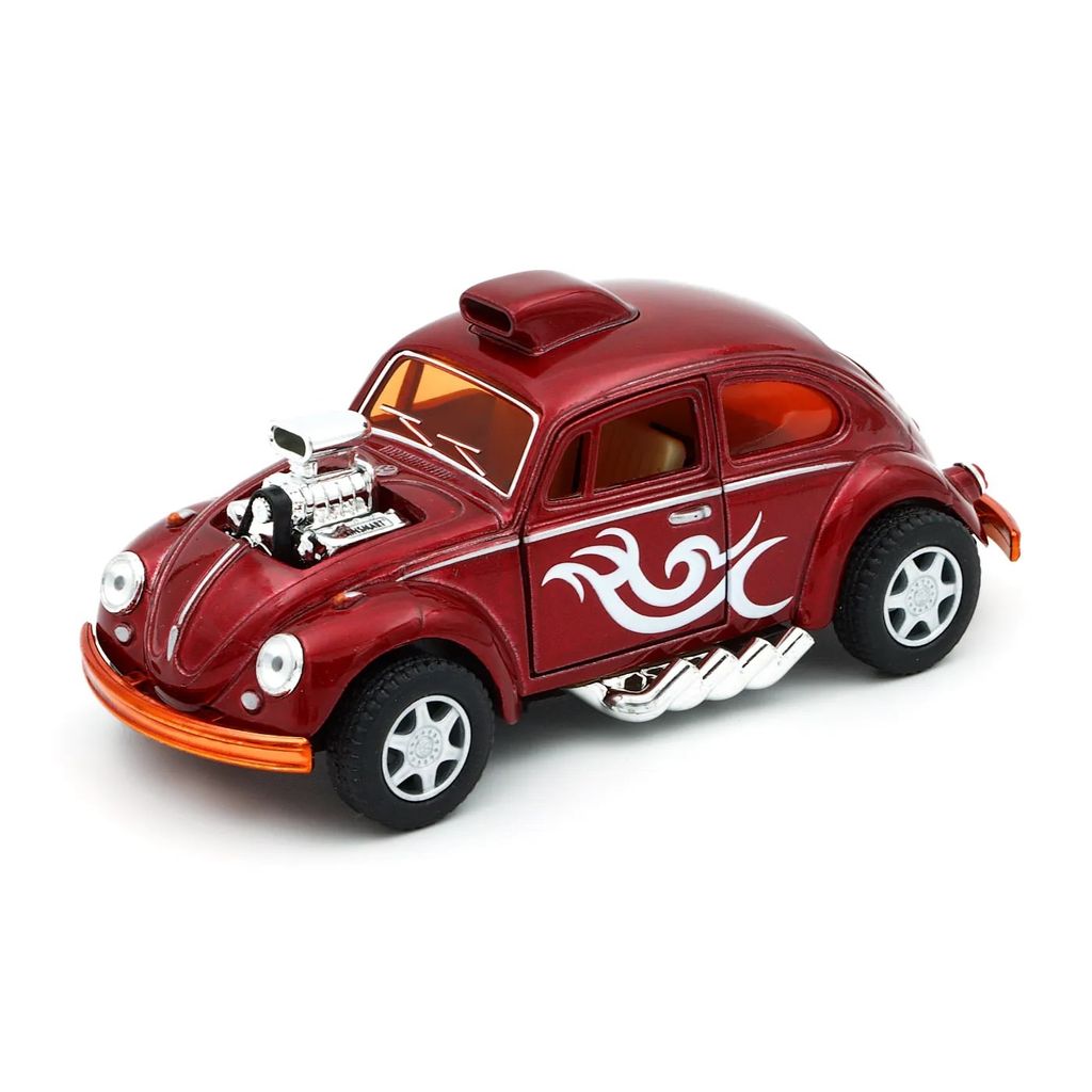 Röd (vinröd) Volkswagen Beetle Custom Dragracer från Kinsmart i skala 1:32 (längd 13 cm).