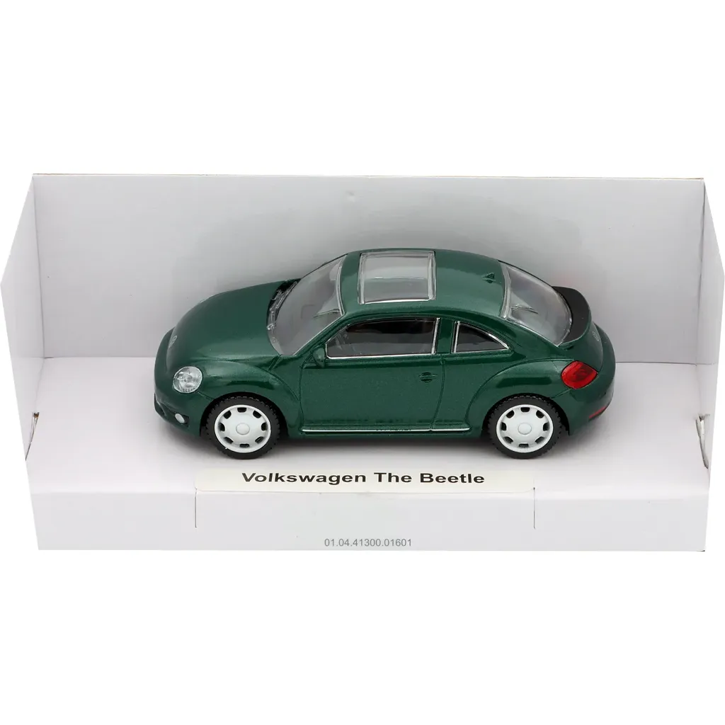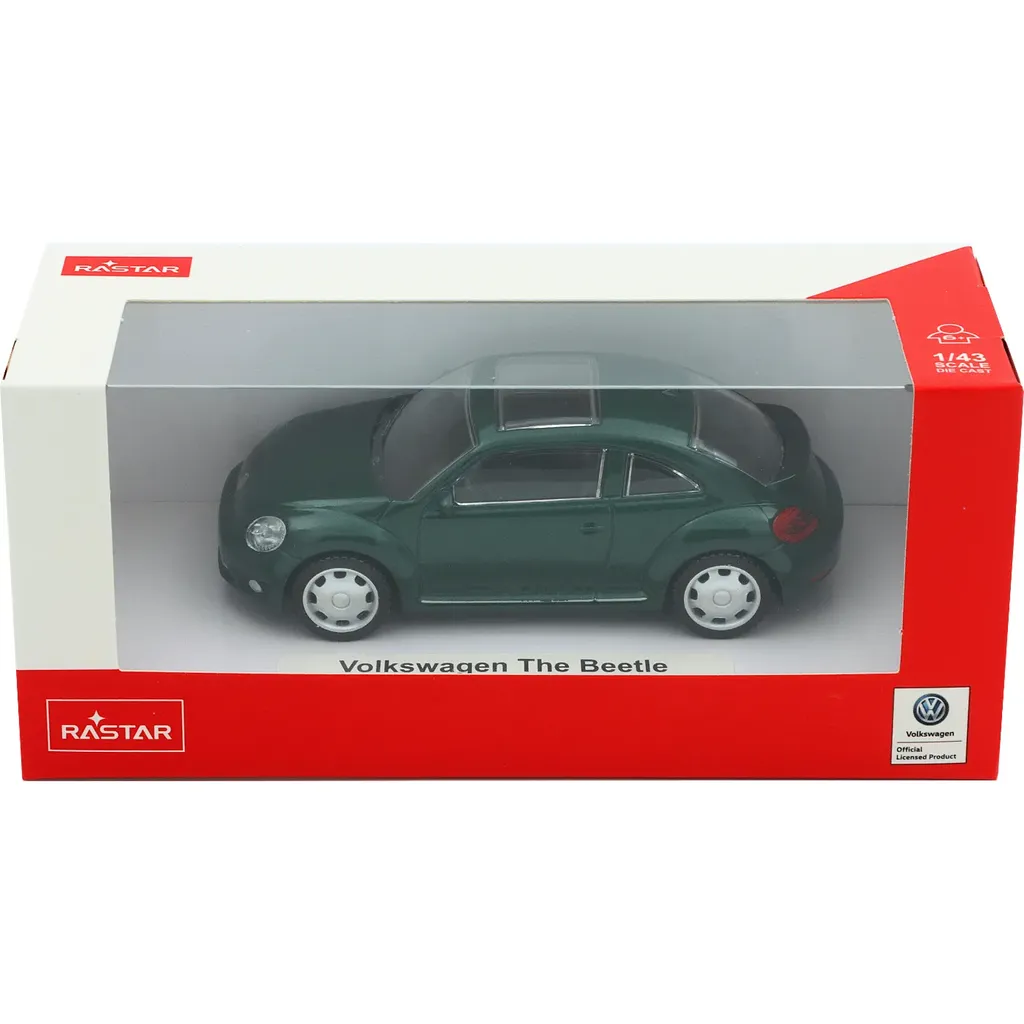 Mörkgrön Volkswagen Beetle som leksaksbil från Rastar. Bilen är 10 cm lång (skala 1:43).