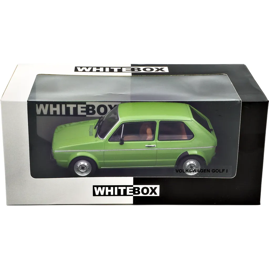 Grön Volkswagen Golf 1, årsmodell 1974, som modellbil från tyska WhiteBox i skala 1:24 (15,5 cm).