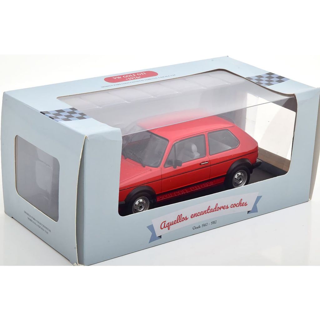 Modellbil från Altaya, en röd Volkswagen Golf 1 GTI från 1976 i skala 1:24.
