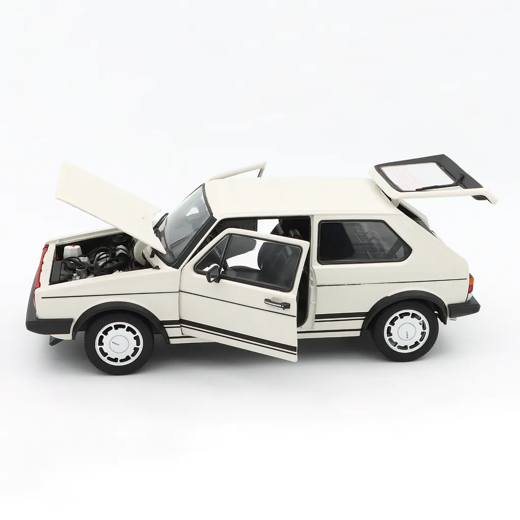 Vit Volkswagen Golf I GTI som modellbil från Welly i skala 1:18 (21 cm).