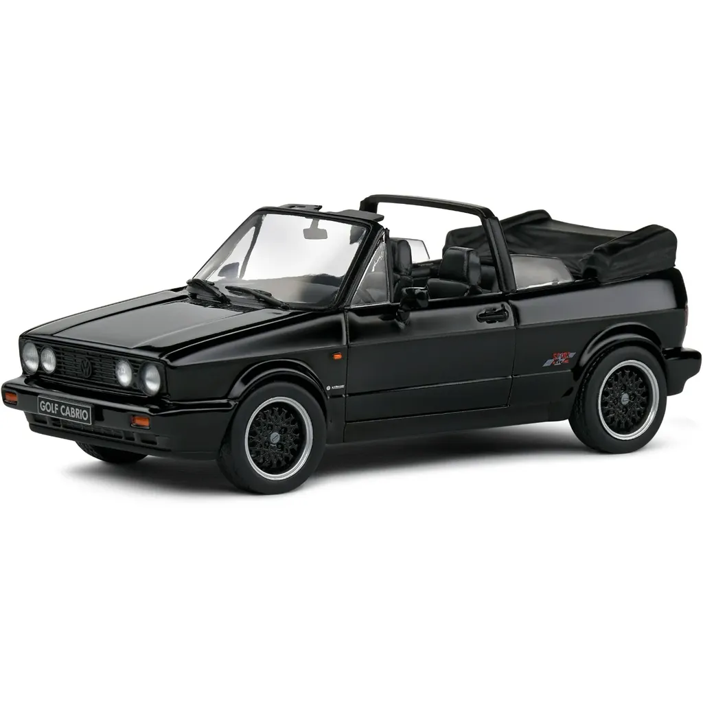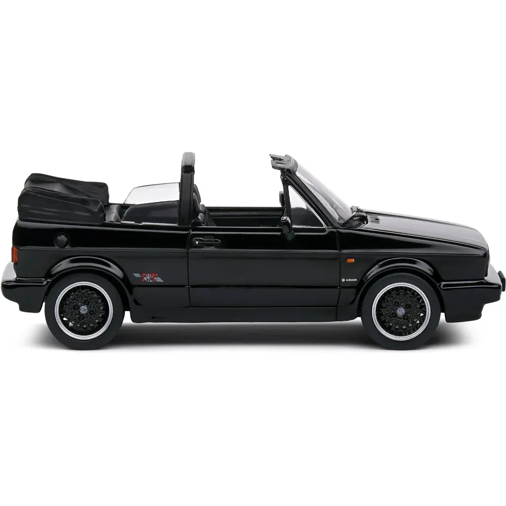 Volkswagen Golf MK1 Convertible (cabriolet) Sportline, årsmodell 1992, som modellbil från franska Solido. Modellen är tillverkad i skala 1:43 vilket för denna modell blir 9 cm "VW-cab". Färgen är svart (Brilliant Black).