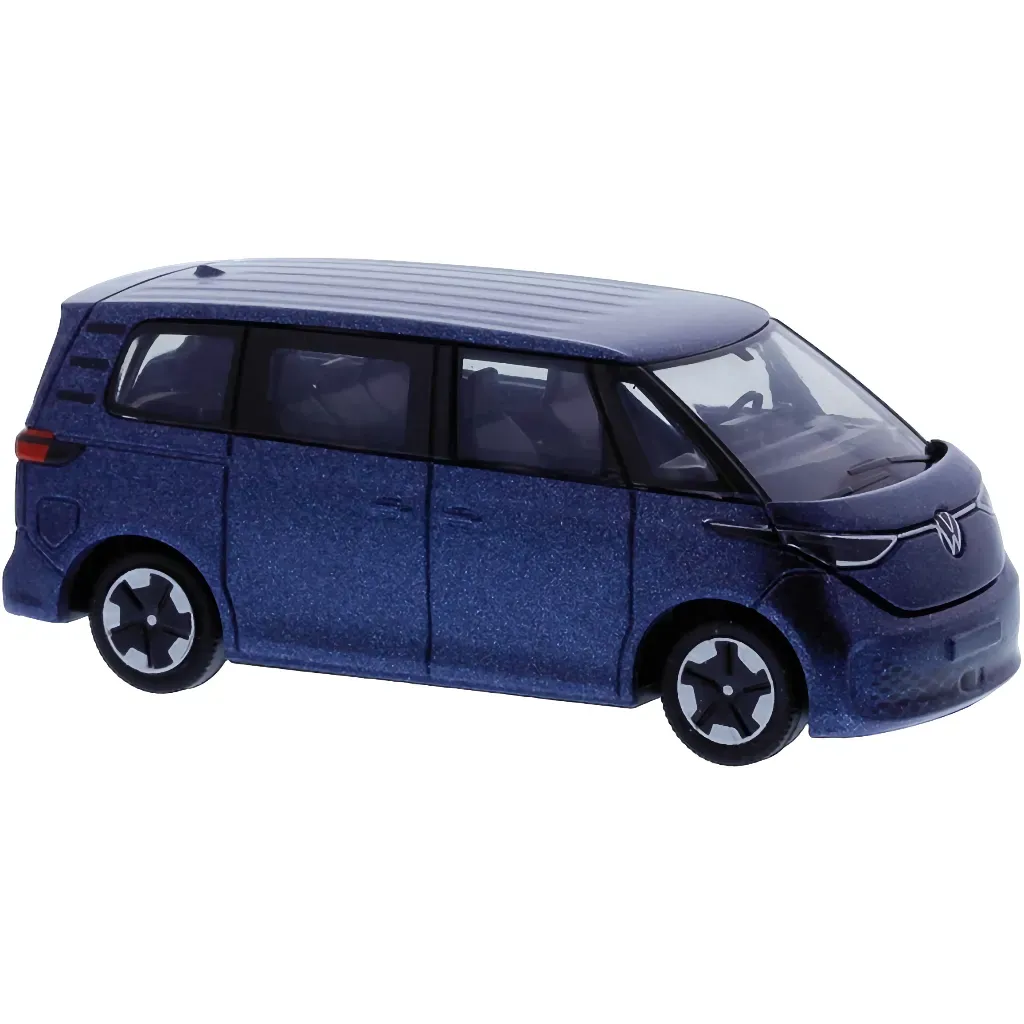 Modell av en blå (Starlight Blue metallic) Volkswagen ID. Buzz.