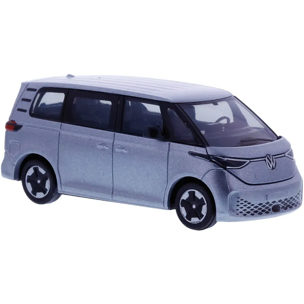 Modell av en silverfärgad (Mono Silver) Volkswagen ID. Buzz i skala 1:87 (5,4 cm).