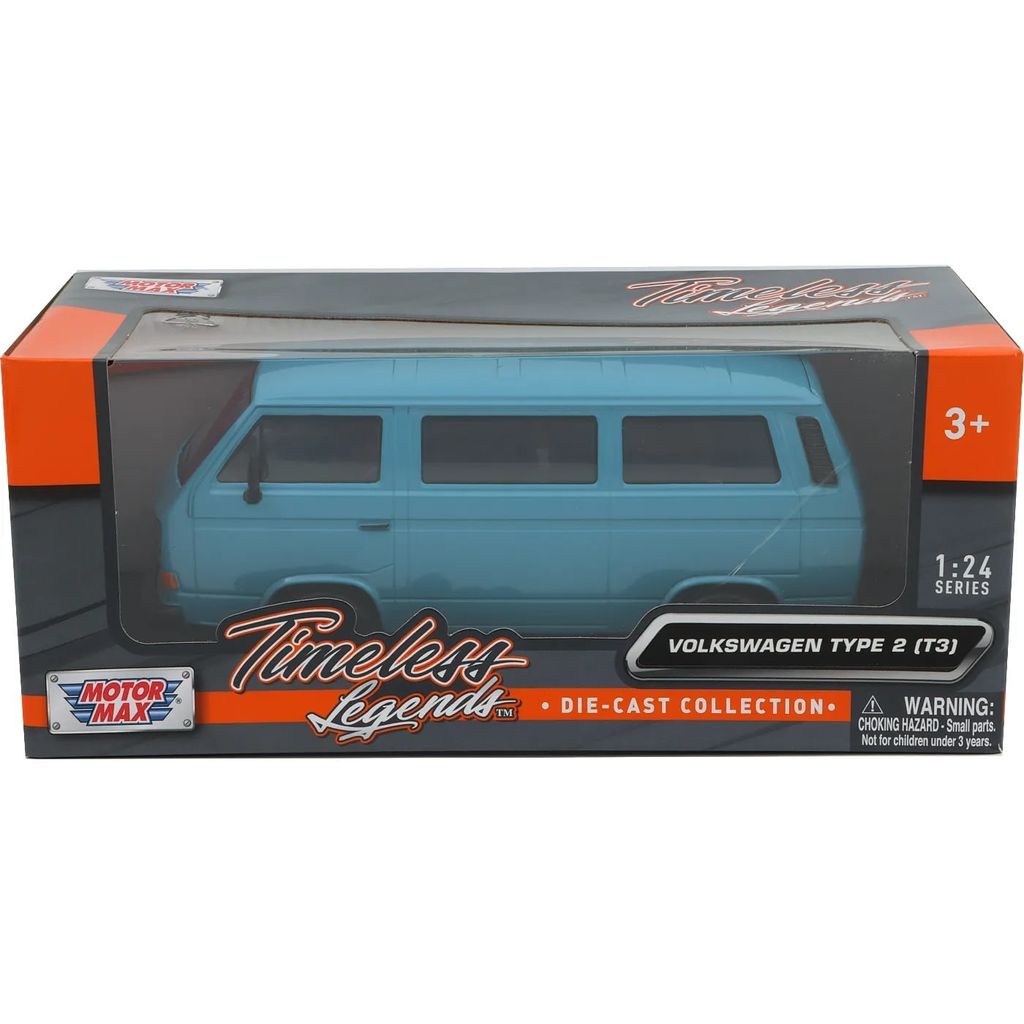 Blå Volkswagen Type 2 (T3) från Motormax i skala 1:24 (19 cm).