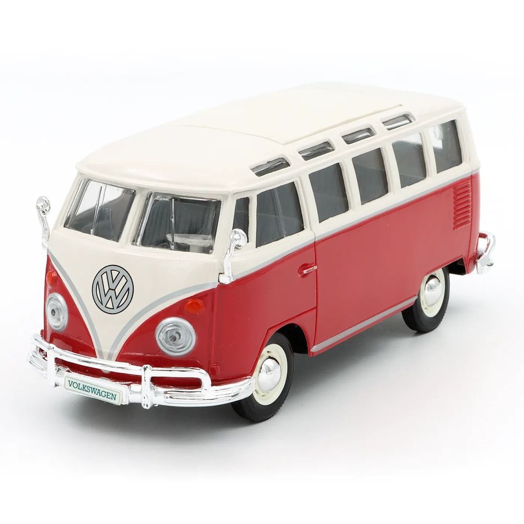 Röd och vit Volkswagen Van "Samba" Bus (T1) från Maisto i skala 1:25 (17,5 cm).