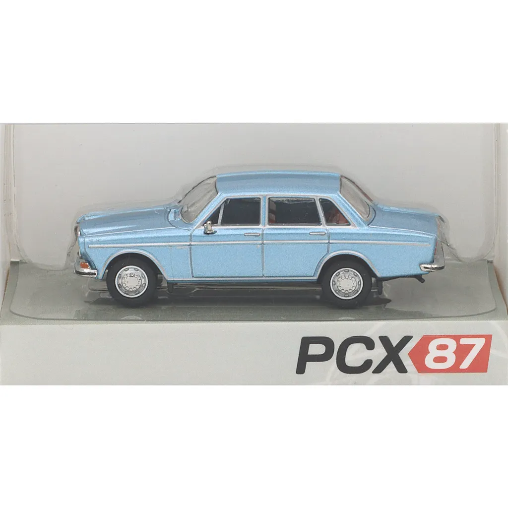 Volvo 164 i färgen blå/blåmetallic från tillverkaren PCX87. Modellen är i skala 1:87 (5 cm) och avsedd för samling eller prydnad.