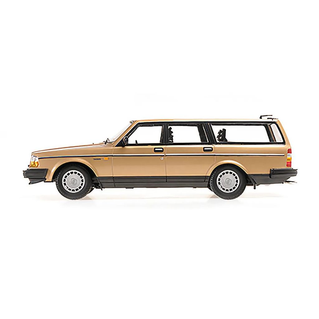 Volvo 240 GL Break, årsmodell 1986, i guld från tyska Minichamps. Skalan är 1:18 vilket ger oss 26 cm modellbil.