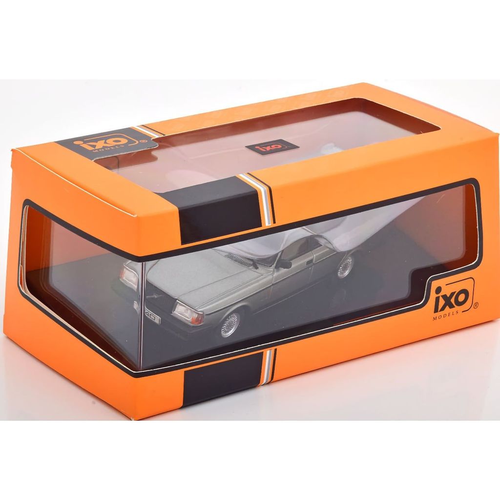 Fin Volvo 240-modell från Ixo Models i skala 1:43 (ca 11 cm lång). Bilen är gråmetallic.