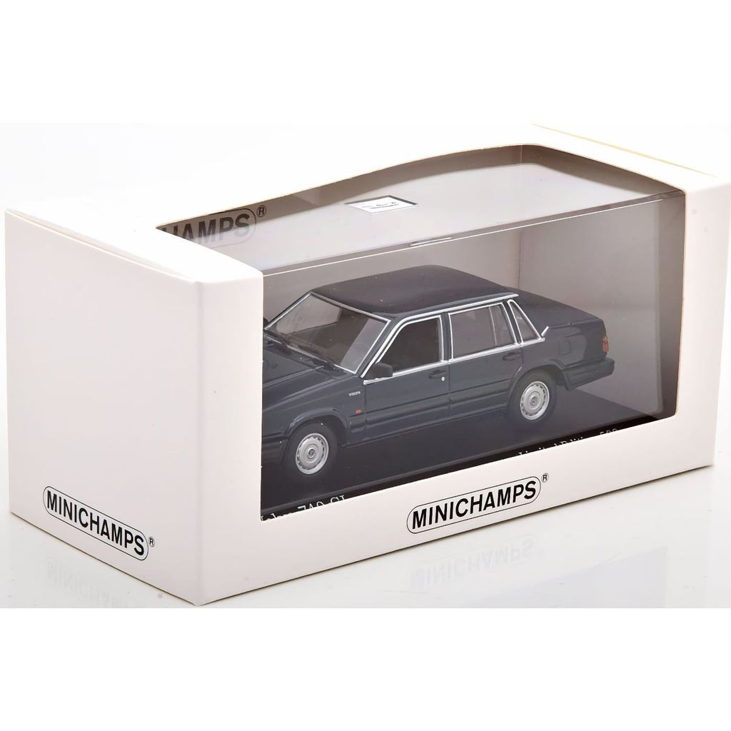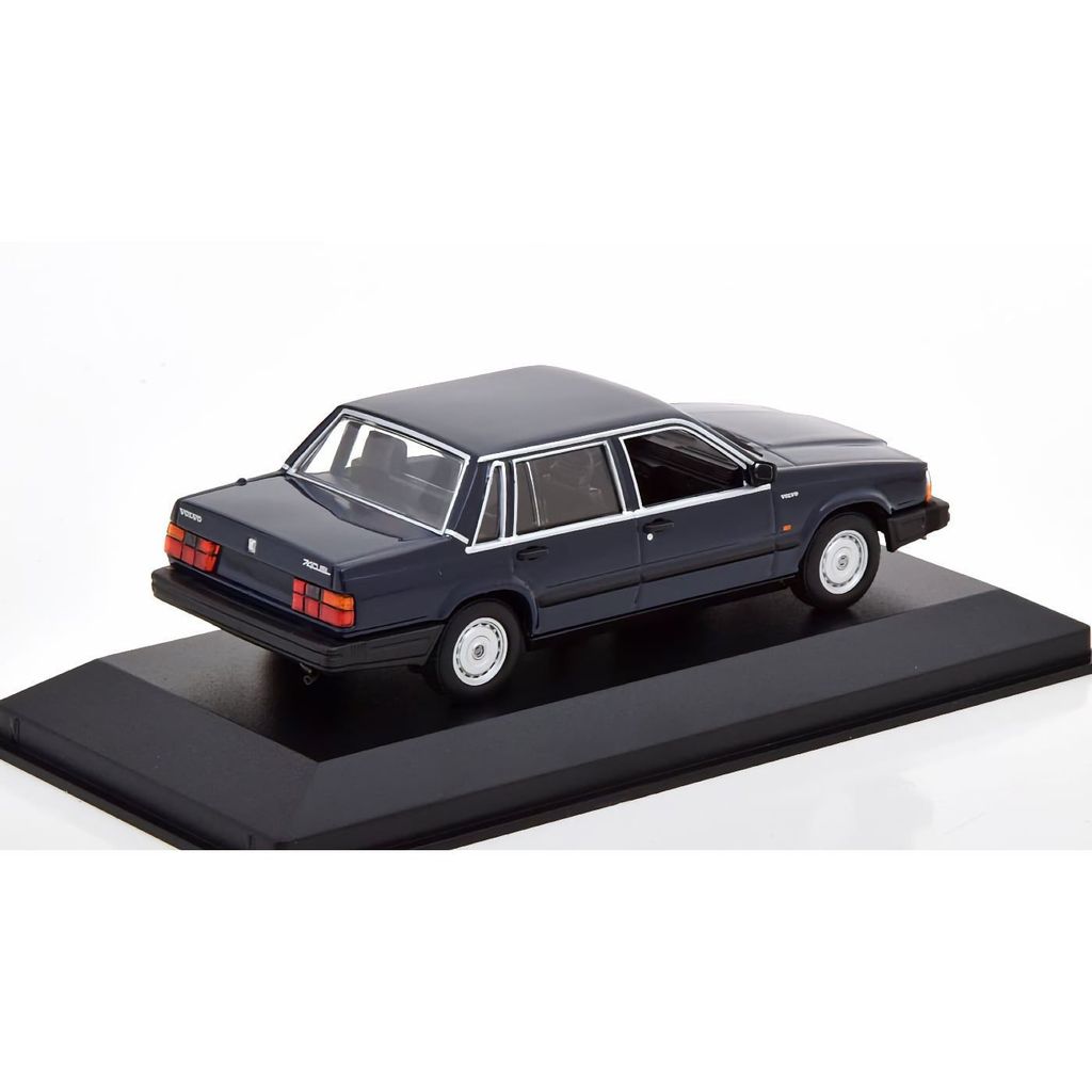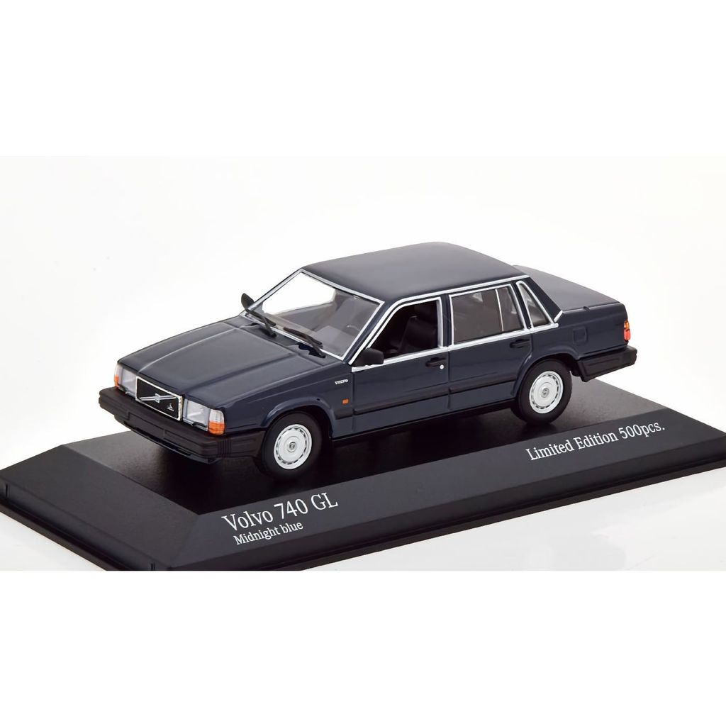 Skalenlig modell av en mörkblå Volvo 740 GL från 1986 tillverkad av den tyska modellbilstillverkaren Minichamps. Skalan är 1:43 och bilen är då ca 11 cm lång. Modellbilen har en limiterad upplaga om 500 exemplar.