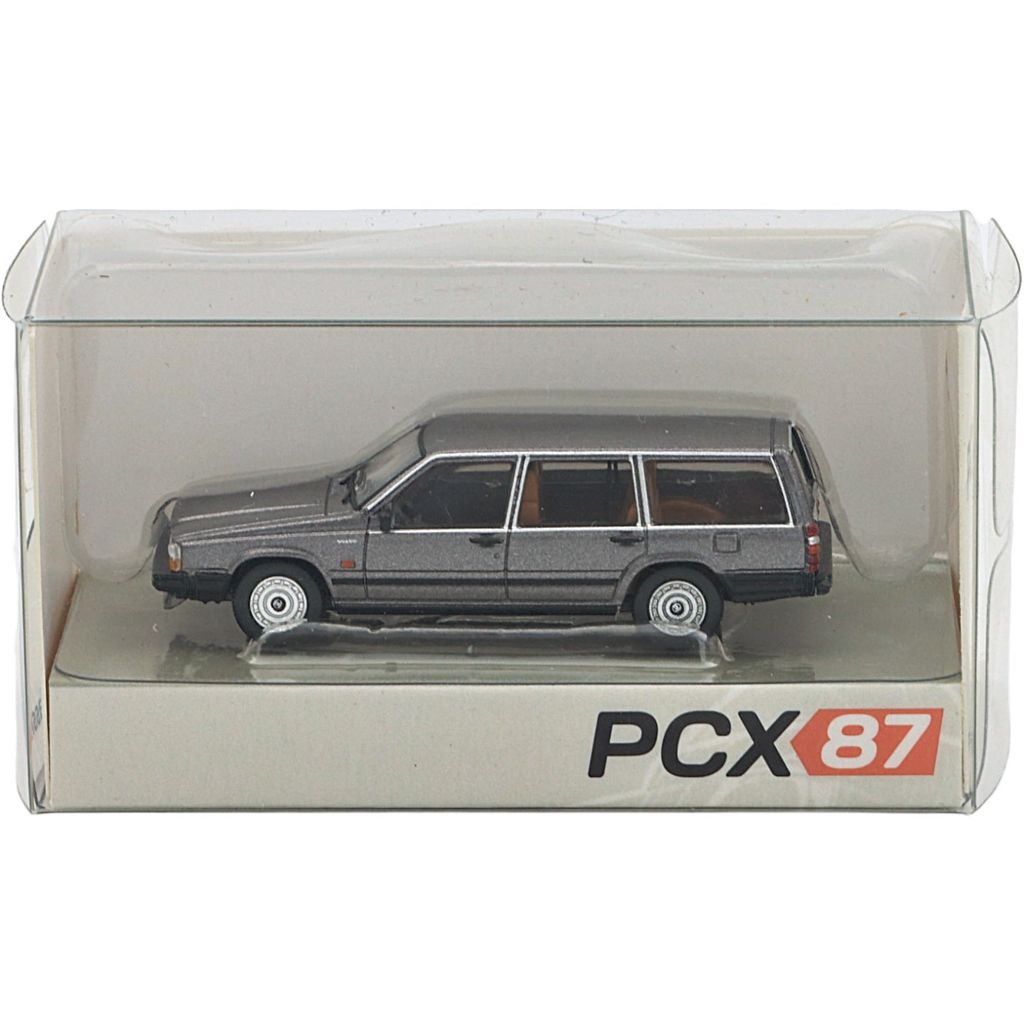 Volvo 740 Station Wagon (kombi) i grått / mörkgrått metallic som liten modellbil (skala 1:87 / 5,4 cm) från PCX87.