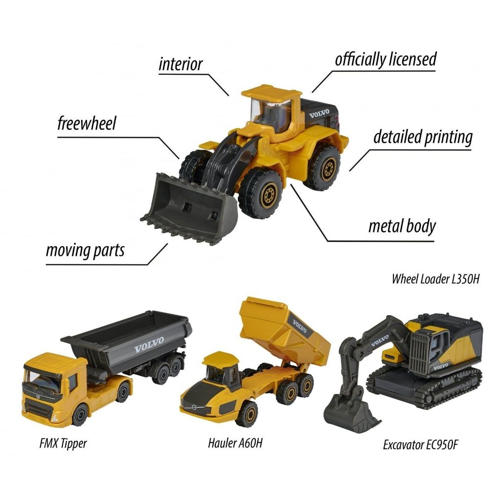 Majorette Volvo Construction Giftpack är ett 4-pack med leksaksbilar i metall (med plastdetaljer).