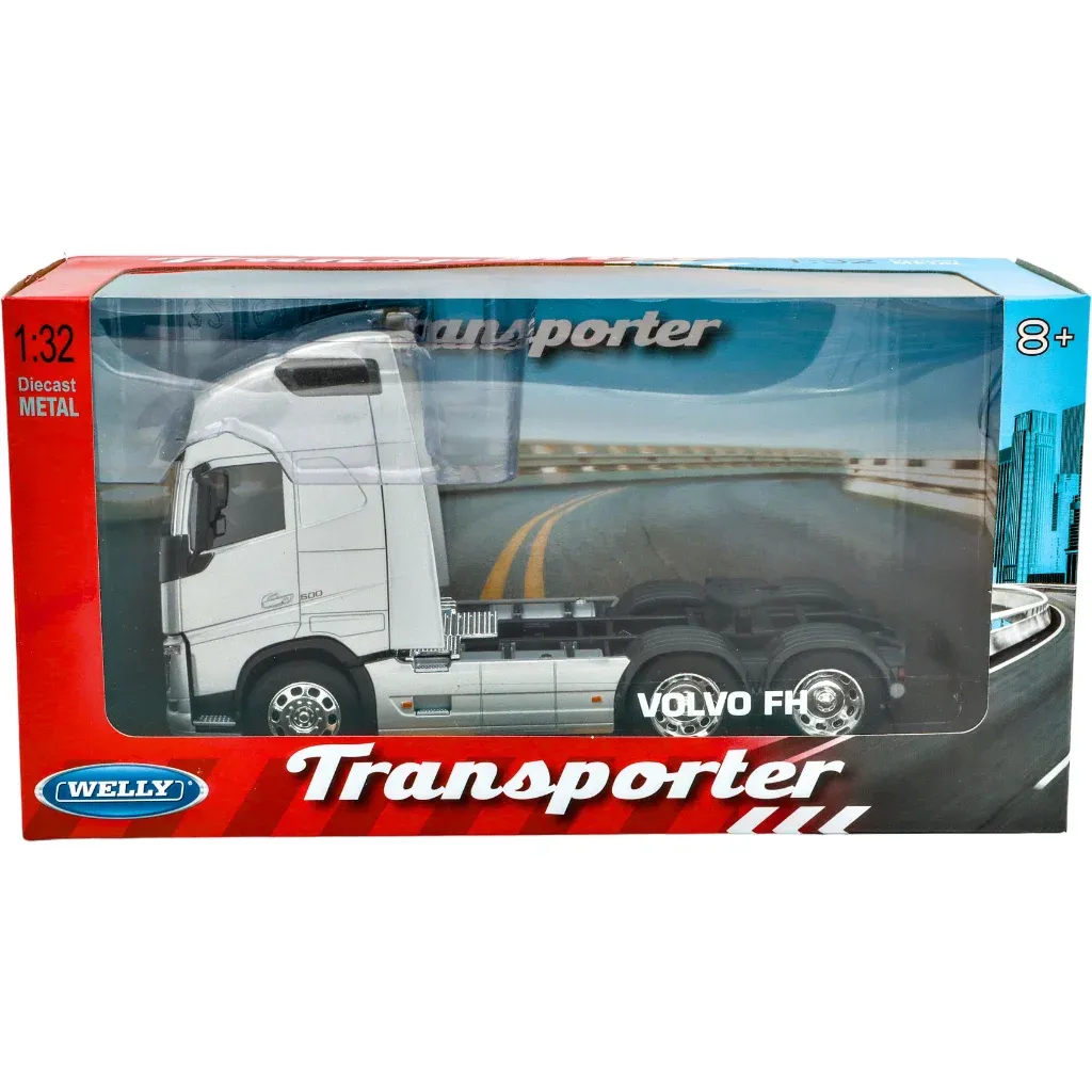 Dragbilen Volvo FH 500 i silver / grått från modelltillverkaren Welly i skala 1:32 (22 cm lång).
