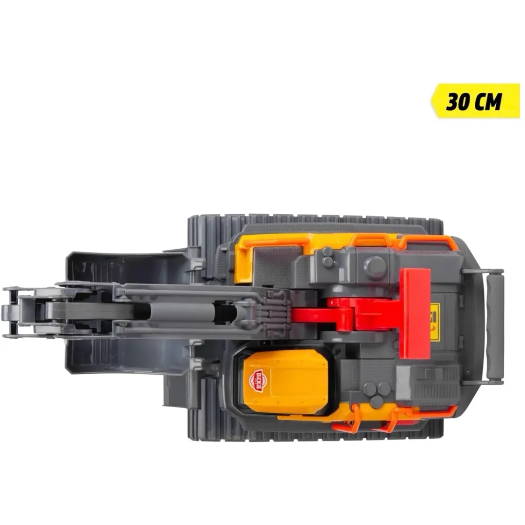 Grävaren som är 30 cm lång har hjul som underlättar leken.