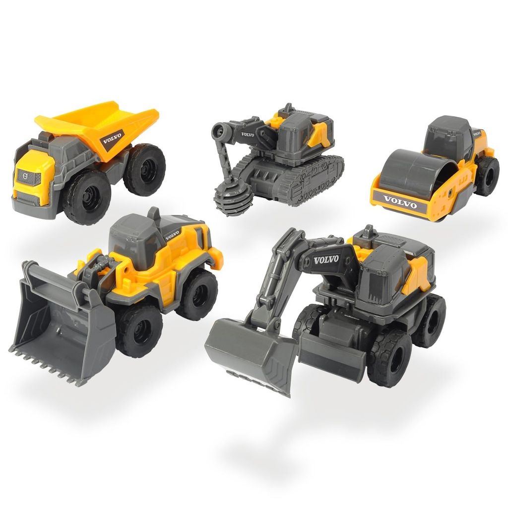 Fempack Volvo-entreprenadmaskiner från Dickie Toys.