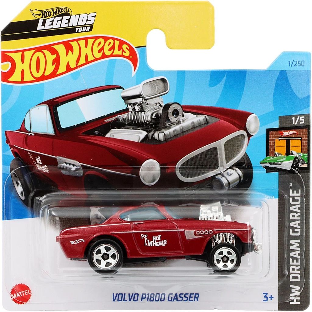 Volvo P1800 Gasser från Hot Wheels och serien HW Dream Garage där denna leksaksbil är bil nummer 1/5. Bilen är nummer 1/250 från 2023 och har ett short card (5785). Volvons artikelnummer är HKJ94. Just denna bil ingår i bland annat L case 2023.