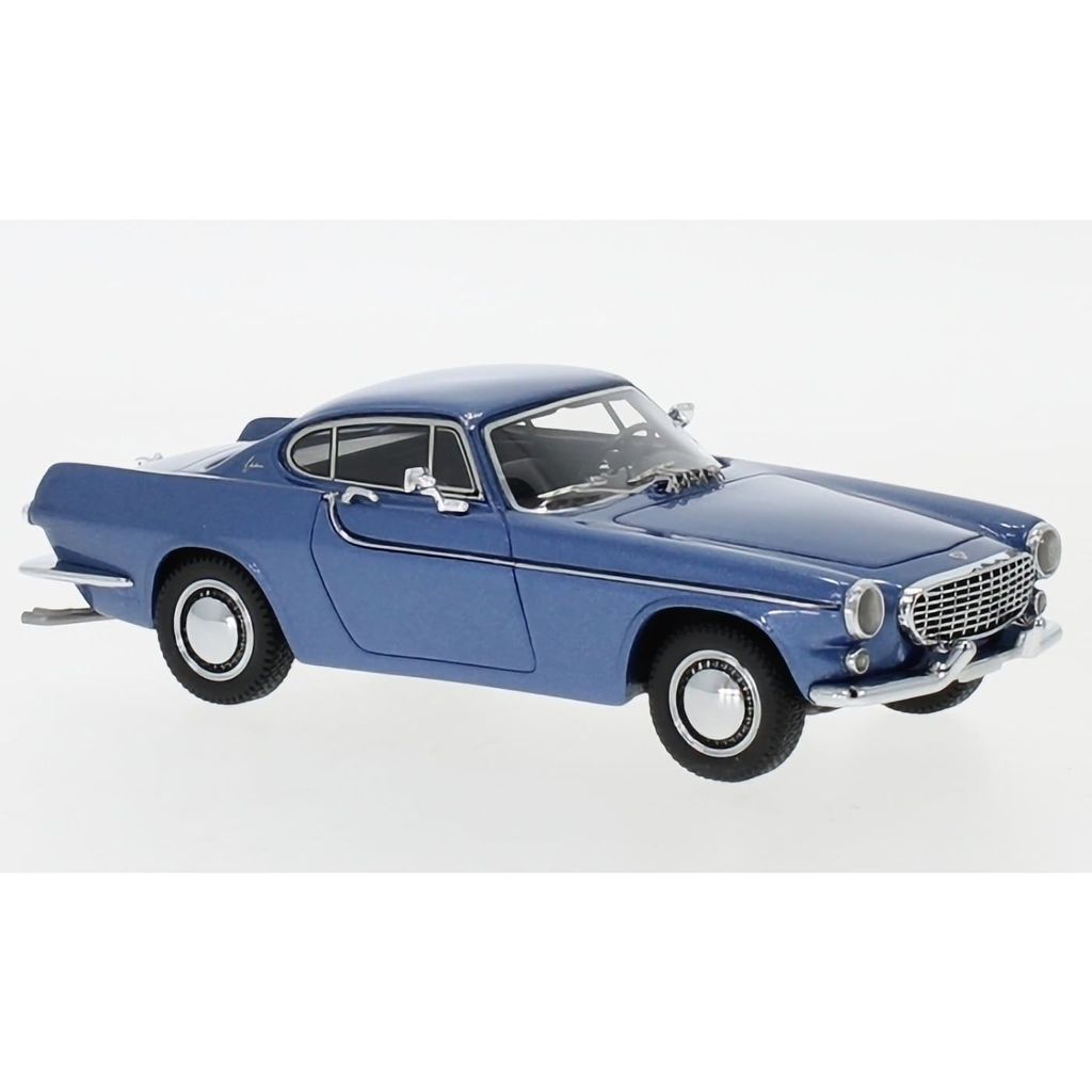 En mycket fin och ovanlig modell av en Volvo P1800 "Jensen" årsmodell 1961 i en metallicblå lack. Modellen är i skala 1:43 (ca 10 cm lång) och tillverkad av NEO Scale Models.