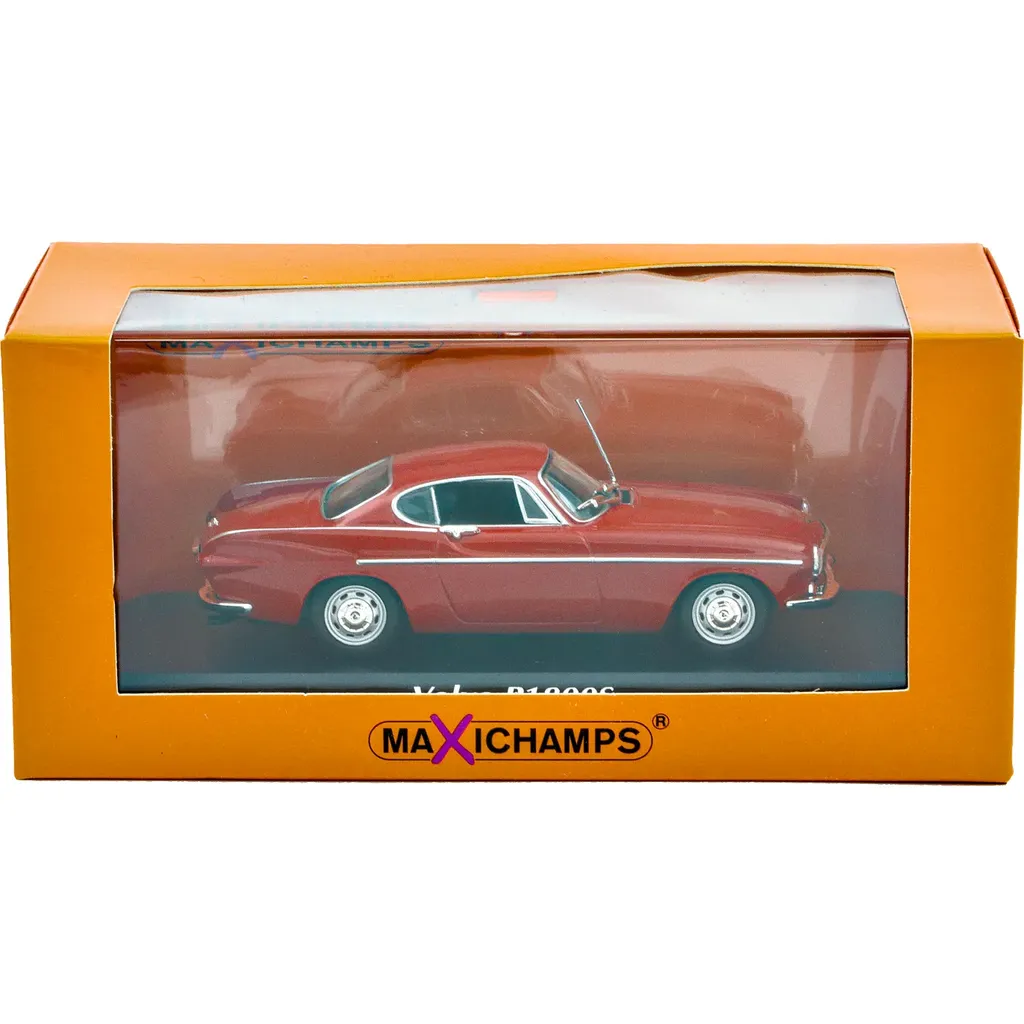 Volvo P1800S i rött som modellbil. Årsmodell 1969. Bilen är tillverkad i metall av Maxichamps i skala 1:43 (10 cm).