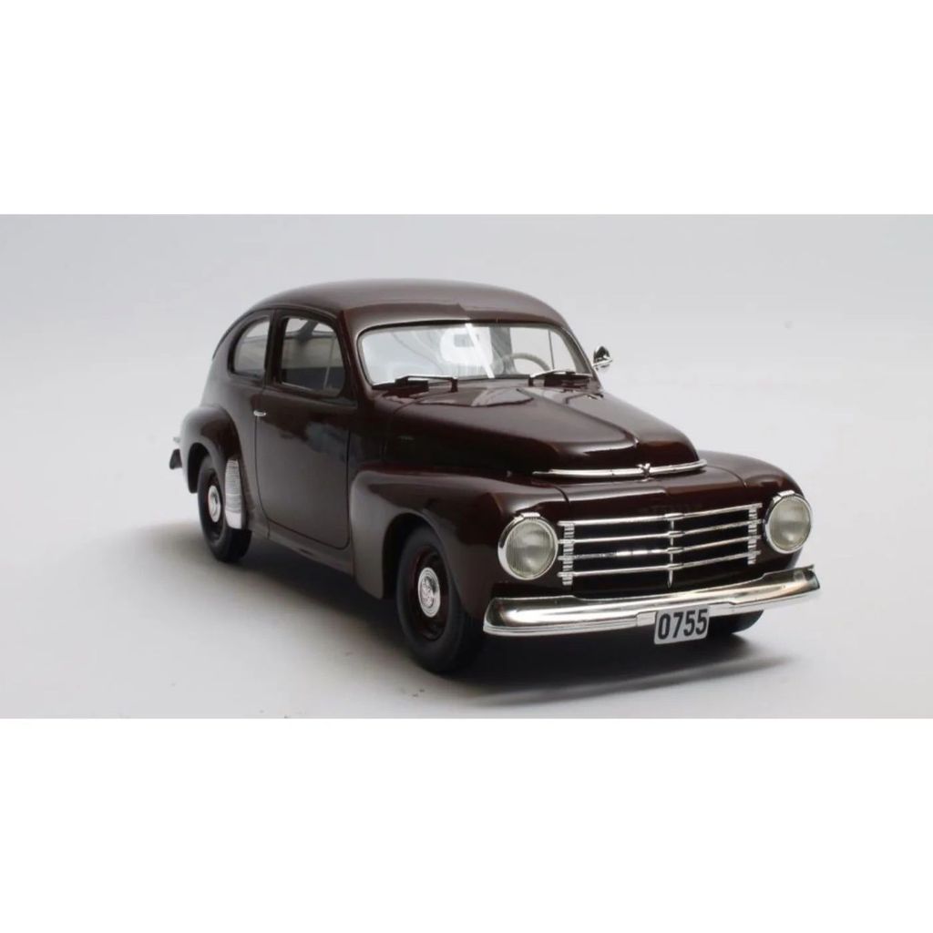 Från modellbilstillverkaren Cult Scale Models erbjuder vi denna fina Volvo PV444 årsmodell 1952 med en rödbrun lack (maroon). Modellbilen är i skala 1:18 och 24 cm lång.