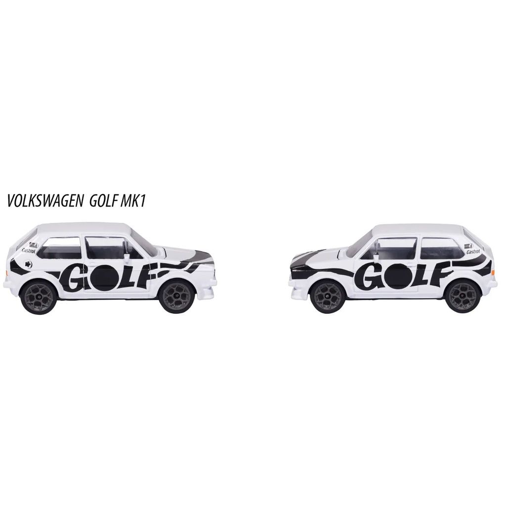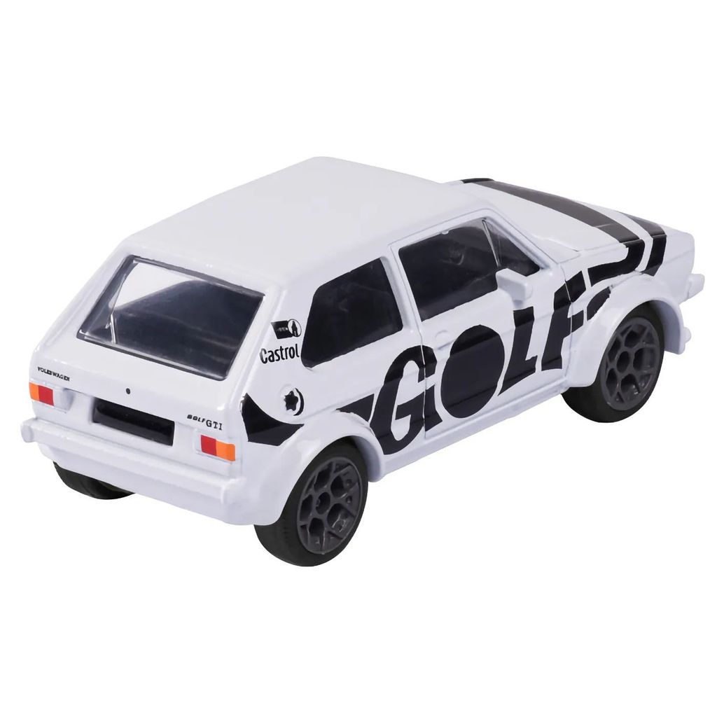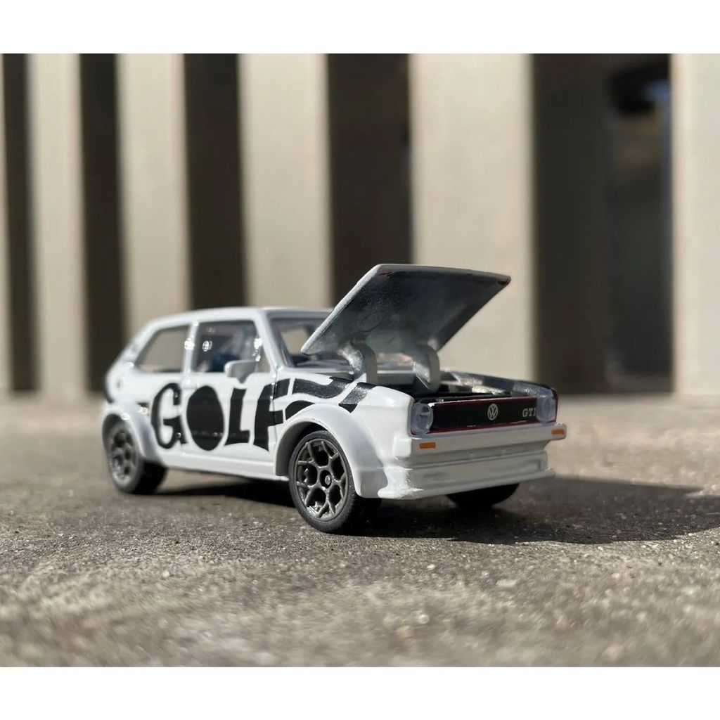 Från Majorettes serie "Volkswagen The Originals - Deluxe" från 2022 kommer denna vita (med svarta detaljer) Volkswagen Golf GTi MK 1 med öppningsbar motorhuv.