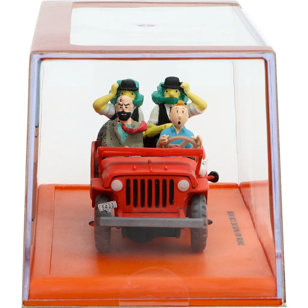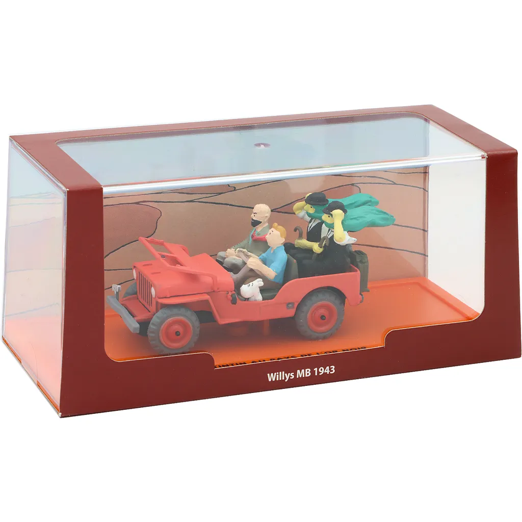 En jeep Willys MB från filmen "Det svarta guldet" med Tintin. Modellen är i skala 1:43 (7 cm) och avsedd för samling eller prydnad.
