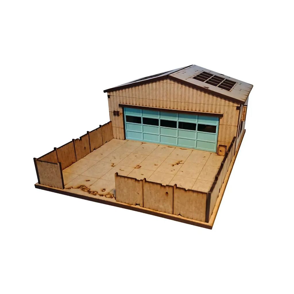 Modellens 43 delar är omålade delar i MDF (pressade och limmade träfibrer) utskurna med laser. Delarna är 2 respektive 3 millimeter tjocka och sätts ihop utan lim. Det rekommenderas dock lim på ett ställe i instruktionen så ett par klickar är aldrig fel. Garageporten är i kartong.