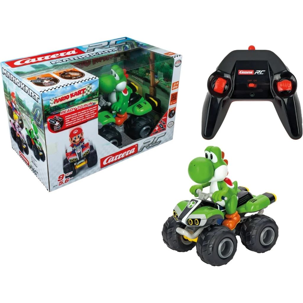 Radiostyrd bil i form av en fyrhjuling (Quad) från Mario Kart som körs av Yoshi. Produkten är tillverkad av Carrera och är officiellt licensierad av Nintendo.